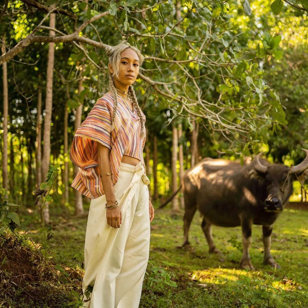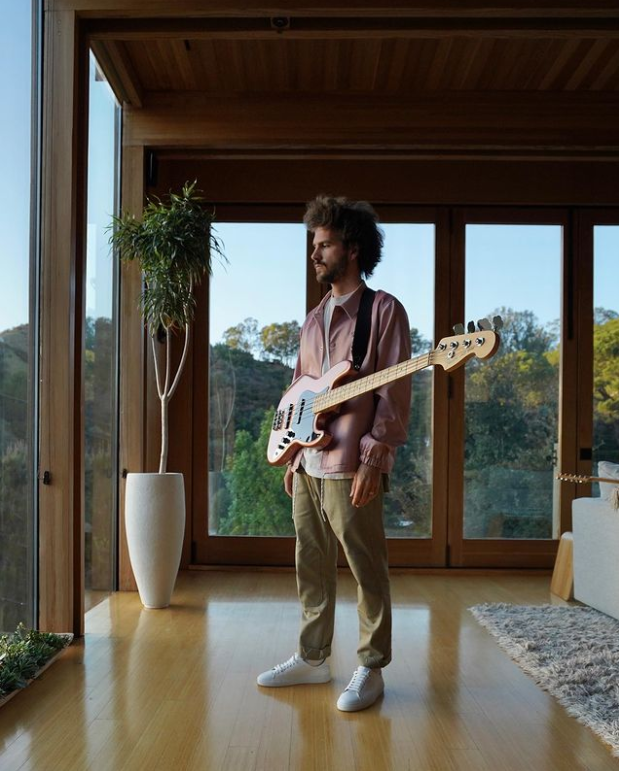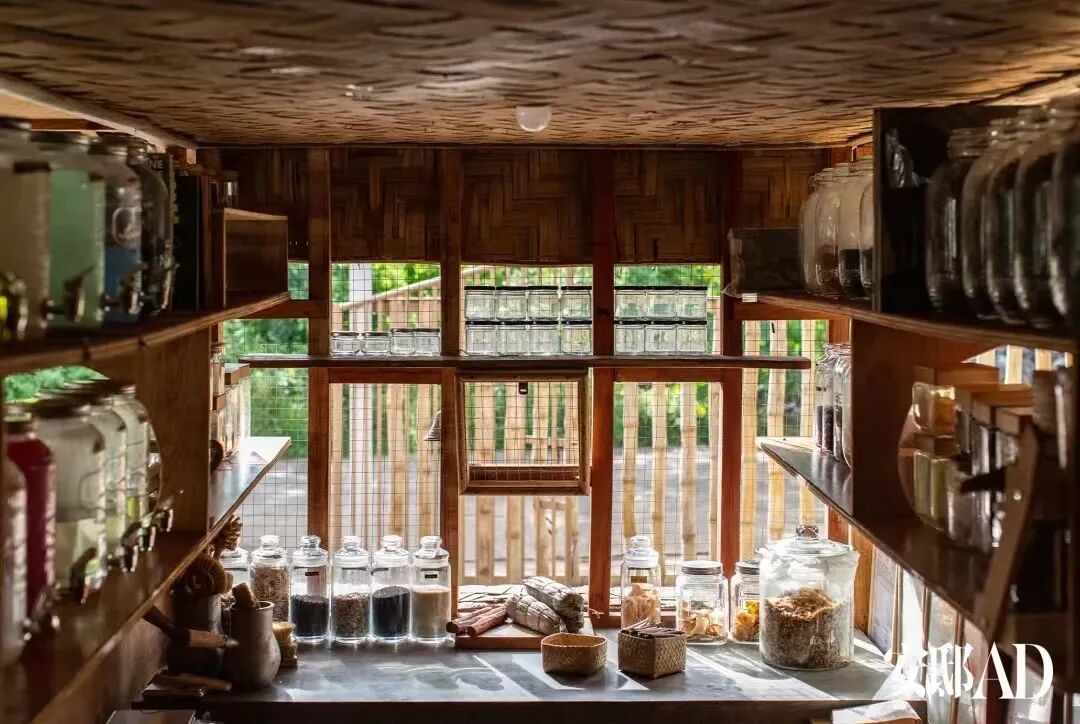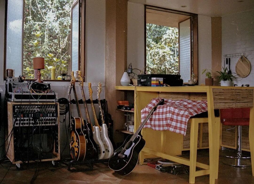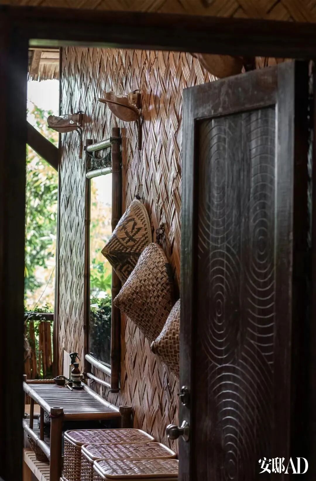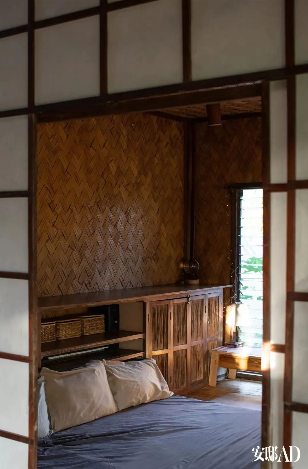 院子里,高大棕榈树、宽大的芭蕉叶,伴着清晨的阳光,影影绰绰,落在玻璃窗上;FKJ坐在钢琴旁,蓬松的卷发,慵懒的背影,指尖流淌出动人的音符~FKJ是法国House新一代先锋音乐人,这场演出是他在菲律宾自家房子里完成的。看这场演出时,芍药就他的家产生了极大的好奇心,视频中流出的诗意片段,令人产生无限向往。FKJ和妻子(((O)))、孩子一起生活在菲律宾一座名叫YlangYlang/依兰依兰的小岛上。他们的房子隐匿在一片茂密的棕榈树群中,据说是由一位奥地利退休舞者设计,为菲律宾传统建筑Bahay Kubo高跷竹屋与偏现代建筑的复合式空间。竹屋三面环绕着密林,一面朝海,茂密的棕榈树将房子掩映成一座绿岛,西太平洋炙热的海风从这里穿堂而过,耳边是自由欢腾的虫鸣鸟叫,风和海水合奏出浪漫的乐曲~FKJ和妻子(((O)))在这里几乎过着原始的诗意生活,日出而作,日落而息,房子没有通电,日常用电靠的是太阳能。最初,他们是在Airbnb上发现的这个房子,住了一晚后,房子的构造让他们十分着迷。没想到房东说正准备把它卖掉,而他们当时恰好也在找新的住所,于是就买了下来,按照自己的喜好,改造成梦想之家。(((O)))将这座小屋称为「The Sundrop Garden」~整栋房子分为两部分,高跷竹屋是一家人的居住空间,另一边,偏现代化的建筑是夫妻二人的音乐工作室。高跷竹屋以竹木为主要材料,下方架空,使得空气流通,防潮防暑防蛇虫,与我国西南地区的竹楼功能类似。整间屋子,地板、天花板、梁柱用到的都是竹子或木头材质, 他们还在屋顶开了一个天窗,可以让自然光很好的照进屋子,拥有绝美的光影。室内的软装,也多采用自然材质,如竹木、藤编、传统编织品。客厅中,木质长椅作沙发,木桩作茶几,长椅放上软垫,铺一条具有传统特色的毯子,别有一番风情。沙发后方的墙上挂着一幅水墨画,这是2018年FKJ来北京演出时,一位粉丝送的。客厅两侧的门采用的是落地玻璃门,可以保持开放通透,与室外的茂密丛林几乎0距离。客厅外还有一个阳台,廊下挂着藤编的摇椅和吊床,一家人黄昏的休闲时光,常常在这里度过。厨房小巧精致,位于天窗下,开放式设计,厨房的台面橱柜,也用的是竹、木材质。FKJ的卧室看起来很像民宿,獐子门、百叶窗打造柔和的光线,配上棉麻床品,竹制的家具,打造出一种舒适的度假氛围感。卧室另一侧的卫生间,与卧室风格保持一致,竹编家具占满了空间,就连镜子的边框也是竹,墙上还挂着印有「中国长城」的竹编斗笠帽。比起明亮、舒适的居住空间,工作室像一个神秘的盒子,更吸引我。工作室的家具、软装十分随意,乐器、唱片充斥着整个空间,透着一种慵懒、自由。四面是大大的玻璃窗、竹制的百叶窗,将光与植物糅合得恰到好处。架子鼓、钢琴、电子琴、音箱……各自随意的散落着,好像它们原本就是从这里生长出来的,肆意舒展。FKJ近两年的歌曲都是在这间工作室里创作出来的,无数个清晨,伴着阳光和晨雾,鸟鸣与海浪,FKJ坐在这里,敲下一个个音符~都说家如其人,FKJ的家与其灵魂的契合度极高。看完他的家,你或许能够明白,为什么他可以创作出如此浪漫的乐曲~但话说回来,FKJ会从法国搬去菲律宾的小岛居住,并非是为了创作,而是因为爱情。02