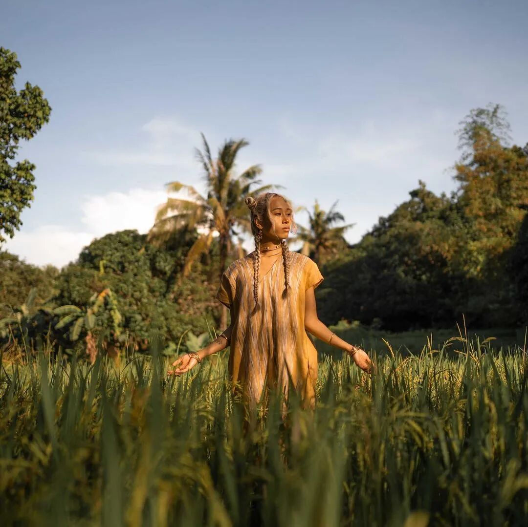 FKJ本名Vincent Fenton,FKJ是他的艺名,这个名字融合了他父母的国籍,French Kiwi Juice法国奇异果果汁,而奇异果正是新西兰最具特色的水果。FKJ父母也热爱音乐,还收藏了大量的唱片,包括英国摇滚、爵士乐、法国音乐等等,所以,从小FKJ就耳濡目染,在音乐声中长大。12岁那年,他得到了自己人生的第一把吉他,从此一发不可收拾,后来他又自学了贝斯等其他乐器。16岁开始正式玩音乐,他以独奏现场表达而闻名,一个人即是一支乐队。如果你看过他的音乐现场,一定会为他的歌声、表演方式着迷,每次表演都是那么不拘一格,极致浪漫。而他的妻子(((O))),也是和他一样很有个性与才华的独立音乐人。(((O)))原名June Marieezy,是菲律宾裔美国歌手和词曲作者。大部分人一开始就会被她的艺名(((O)))吸引,之所以会起这个艺名,是因为她找不到合适的语言来形容自己和自己的作品。另一方面,她的艺名让她很难在网上找到她创作的音乐。对于许多音乐人来说,这简直是灾难,但她却认为这有助于她专注于创作音乐而不是追求流量与名利,打破现有的语言框架,让音乐形式更自由。(((O)))从小在美国达拉斯长大,但她并不认为自己是美国人,「我既不是美国人,也不是菲律宾人,我不觉自己属于世界上的任何一处」。于是,在16岁时,(((O)))便离开了美国的「家」,只身前往菲律宾。原本,她只是想在菲律宾待一段时间,去寻找一个真正的原始的自然的菲律宾。没想到这一待就是许多年,后来,她渐渐爱上了这里,喜欢上自然、纯粹的生活方式,在生活中践行与万物自然平等相处、自给自足的目标。这样看来,FKJ和(((O)))完全就是灵魂伴侣!FKJ和(((O)))在一次演出中结识,2019年,FKJ追随(((O)))的脚步,搬到了菲律宾的小岛与她一起生活。在那里,他们举行了菲律宾传统婚礼,身着白衣,互换花环,许下相伴一生的诺言。在亲人朋友的祝福下,一同跃入湖中,接受洗礼,自由浪漫。婚后不久,他们就有了孩子,两人也都继续做着自己的事业。FKJ在小岛上创作,贫乏的物质生活并没有限制他,相反奇妙的自然常常激发他的创作灵感。如今,他时常还会飞到世界各地演出,然后回家,认真生活,潜心创作。而每一次外出表演就像一次穿梭时空的音乐之旅,值得回味。(((O)))除了创作音乐,还在小岛上开设了一间「种子博物馆」,用于收集植物种子和其他废弃的物件。这不仅仅是在保护当地物种多样性,她更加希望的是通过自己的力量向当地社区以及更多的人提供一种可持续的生活方式。