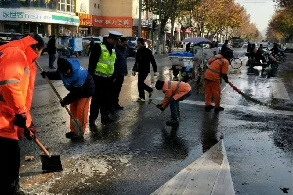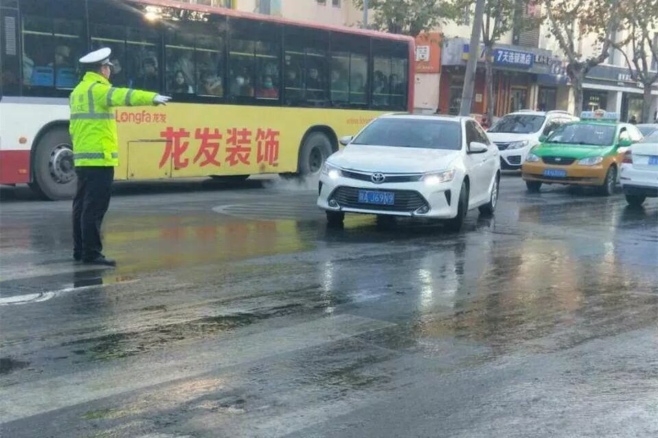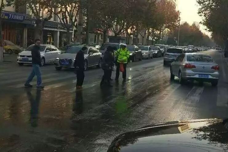 12月18日,西安电子二路与电子西街丁字口附近一自来水管道夜间冻裂,造成路面大面积结冰,幸被西安交警雁塔大队执勤三中队民警巨雷及时发现。民警立即指挥提醒过往车辆、行人小心慢行通过并联系协助城管、市容部门对积冰铲除。当日11时左右,路面积冰被全部清除,冻裂水管维修完毕,没有造成较大人身、财产损失。