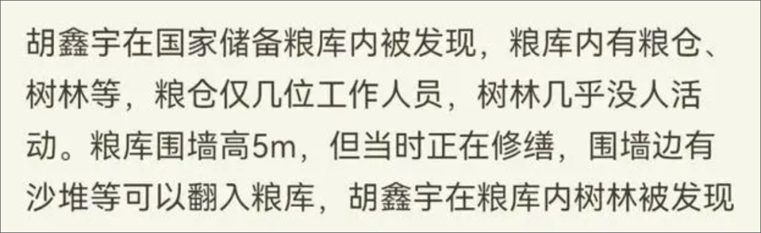 另一方面,粮库的管理者,与学校一墙之隔,但凡有一点责任心,也应该组织工作人员,进行一遍内部巡查,排除胡鑫宇进入粮库的可能性。