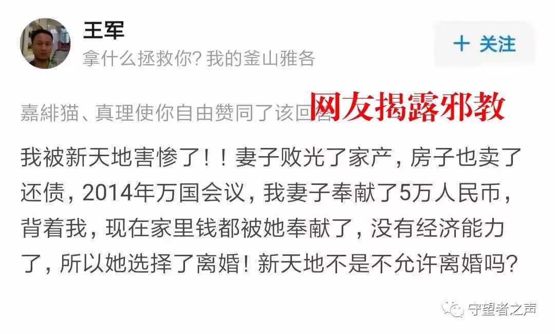各大群中,有很多无知信徒已被新天地邪教徒迷惑。当有人提醒小心邪教信息和错误教导时,很多无知的信徒反而会帮助邪教说话。常见的言论乃是: