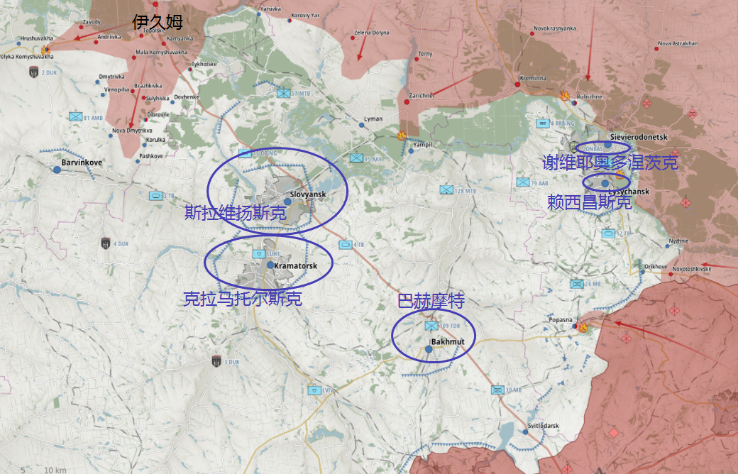 首先,顿巴斯战场为俄军继续俄乌战争的根本战场,伊久姆及顿巴斯北线战场即为顿巴斯战场的核心战场。