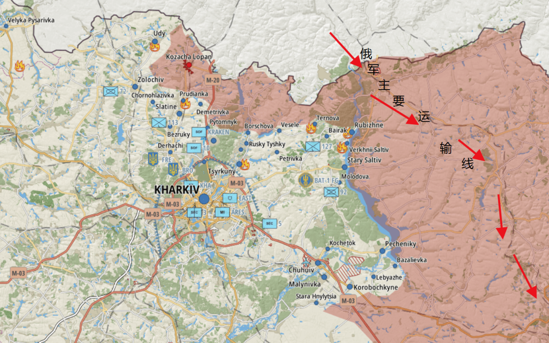 蓝色箭头为乌军后勤线。