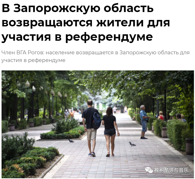 这幅截图的新闻大意为“民众开始积极返回扎波罗热地区的解放区,以获得俄罗斯护照并参加全民公决”。阅读这类图文,读者完全可以感受到俄军控制下的扎波罗热的祥和、稳定,以及及当地民众对现状的认同、对俄军的热情。