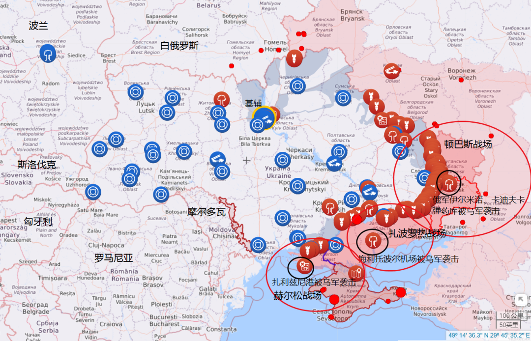 此外,在南方扎波罗热、赫尔松战场,俄乌双方相互对峙、阵线分明,处于较为稳定态势。