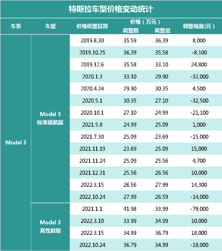以Model 3为例,其标配裸车的价格从最初的35.59万元降至最新的27.99万元,累计降价幅度已经达到21%。