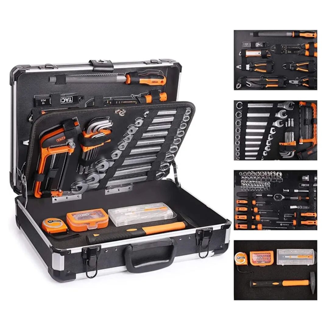 箱体呈三层式设计,打开后折叠支撑杆牢固的把上层撑起来之后就能把中层打开,然后中层可以使用卡扣卡在空中不让它砸下去,这时候就能拿到下层的工具了,这就是细节。千万不要觉得麻烦,安全才是最重要的。更多细节可以看商品页面的视频。
