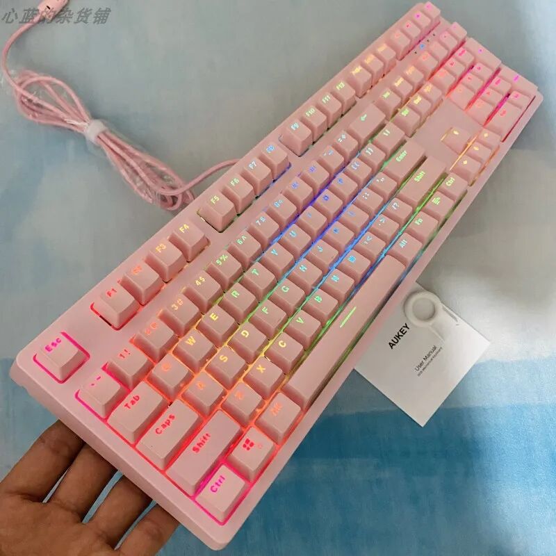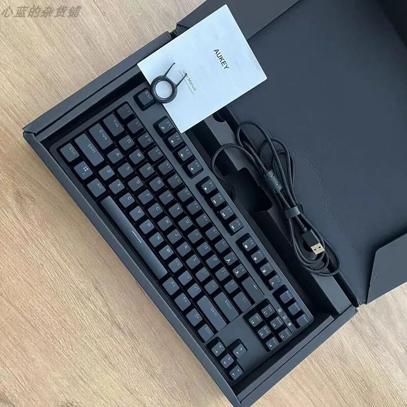 产品一:AUKEY 傲基原装RGB机械键盘红轴盒装,87键发光键盘,手感不错,用料厚实,单个键盘1.3KG左右,支持多种模式灯光调节,型号KM-G14。