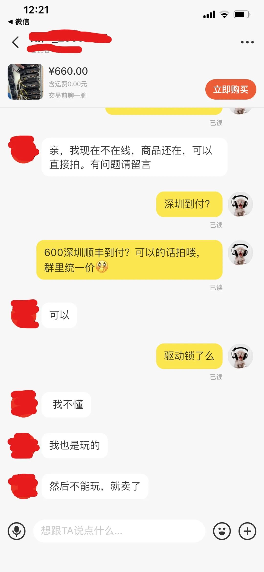 半信半疑的垃圾佬组队准备去pk矿主,结果去了以后,发现矿主居然是个深圳的【小白】kuang主,关于设备的情况还有硬件参数,还有驱动是不是有锁等基本是一问三不知(只知道赚钱的人最帅了,不然怎么砍价)。