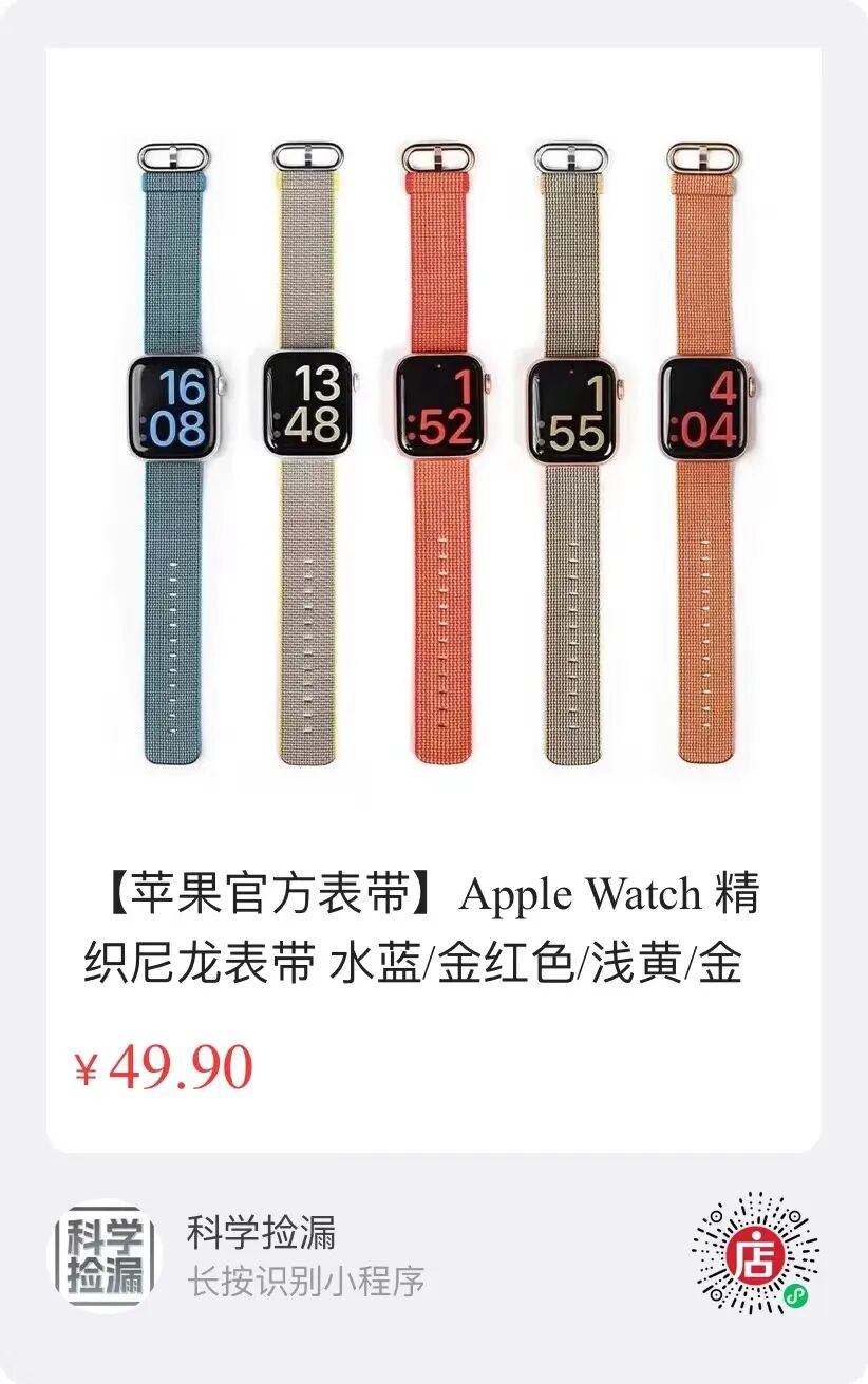 今天给大家推荐苹果官方Apple Watch精织尼龙表带,比常见的硅胶、钢带、皮带,更加罕见。这些款式官方已经下架了,表带通用S1-S8手表(包含SE),对比苹果官网398元的原价,捡漏价55元。杂牌价格换正品。