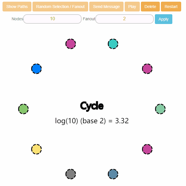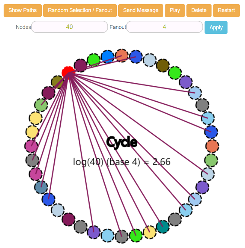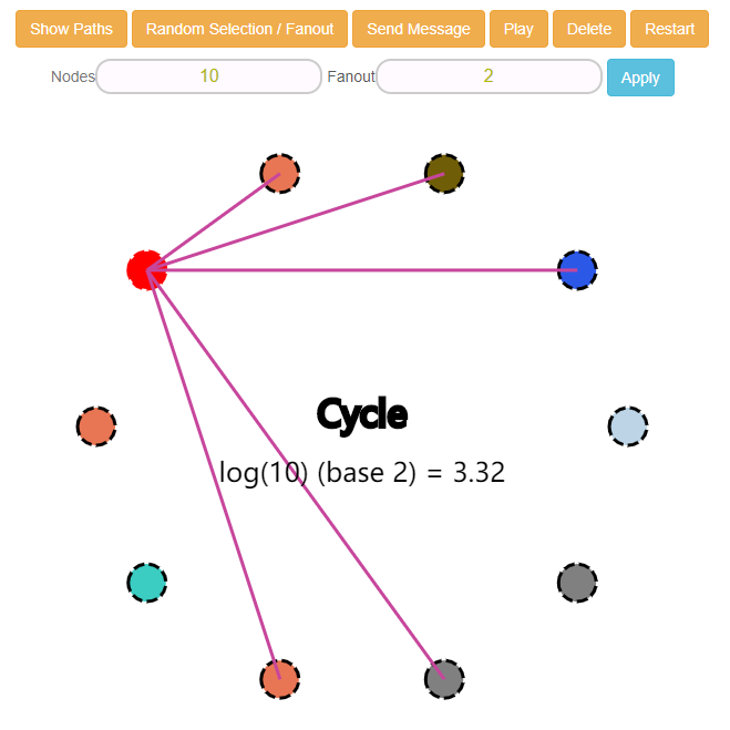一个节点想与网络中的其他节点分享一些信息。然后,它定期从节点集合中随机选择一个节点并交换信息,收到信息的节点也做同样的事情。该信息定期发送到 N 个目标,N 被称为扇出(Fanout)。