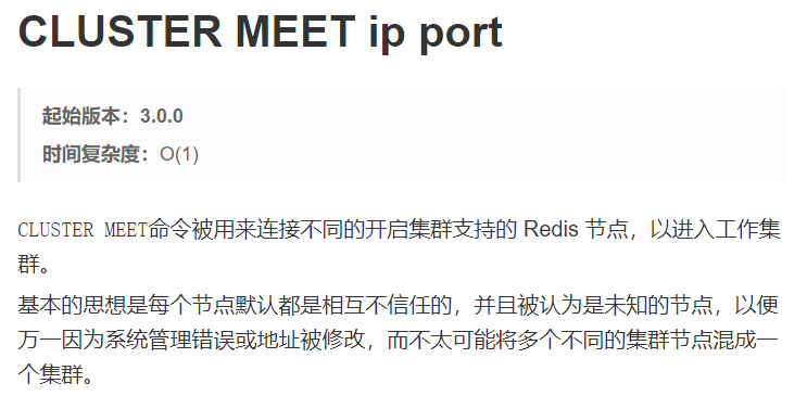 Redis 集群采用的就是 gossip 协议来交换信息。当有新节点要加入到集群的时候,需要用到一个 meet 命令。