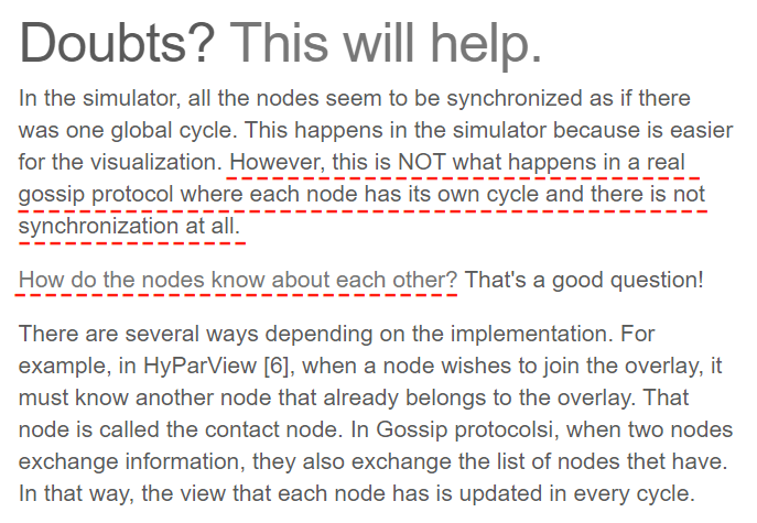但是,在一个真正的 gossip 协议中,每个节点都有自己的周期,它们之间根本没有也不需要同步。