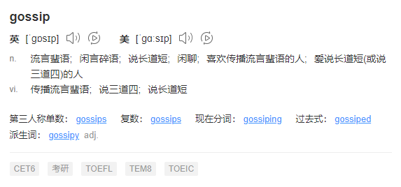 Gossip,先看这个单词,圈起来,要考的啊,这是一个六级词汇,也是考研单词,意思是“流言蜚语”。