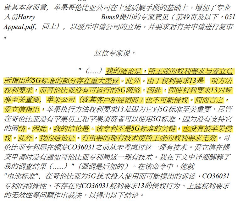 尤其是苹果哥伦比亚公司没有授权其他手机制造商使用iOS操作系统,所以哥伦比亚消费者没有替代的此类产品供应商。因此,苹果指责爱立信试图将苹果哥伦比亚公司销售的某些产品赶出市场,获得不公平和不公正的竞争优势。并抨击了爱立信"'掠夺性诉讼'的做法。但是最能支持苹果的一个论点是,涉及诉讼专利的"权利要求13也包括一种方法,而目前哥伦比亚还没有5G网络在运行",换句话说,这种方法不能使用。”![]()