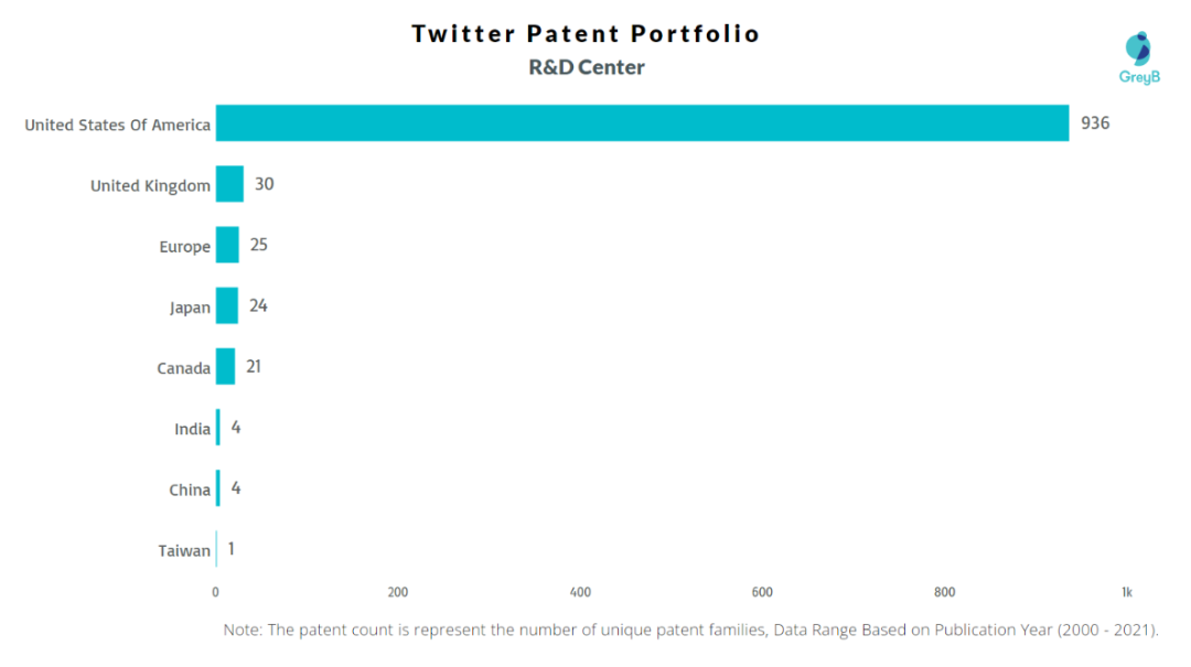 twitter专利的主要研发中心(R&D)来看,依然是聚焦在美国,英国和欧洲有一些。