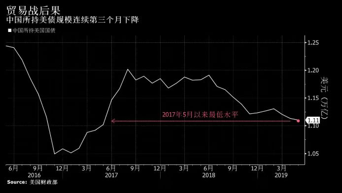 事实上,中国一直在小幅减持美国国债,当前持仓处于两年来最低水平,比 2013 年减少约 2000 亿美元。