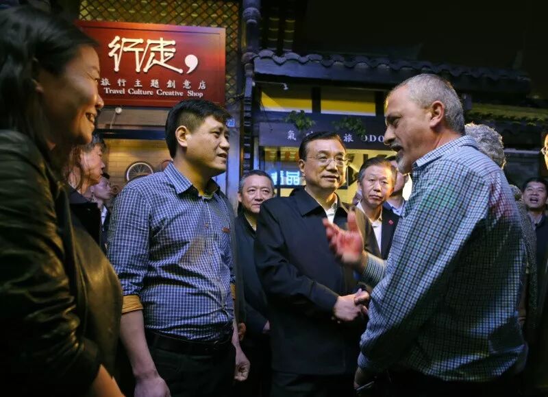 2016 年 4 月 25 日晚 8 时 20 分许,一辆中巴车悄然停在成都宽窄巷的巷口。李克强及随行 10 多人走下车来。像一位游客一样,他一连走访了几家小店铺,并买了几样别具特色的旅游纪念品和书籍。在一间啤酒屋前,他还向一位外国游客推荐起了中国的“青岛啤酒”。
