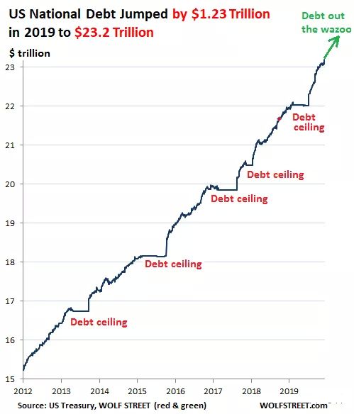 目前美国政府债务已突破 23 万亿美元,且以年增超过 1 万亿美元的速度飙升。