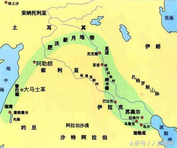 羊、猪和牛,很早就在旧大陆的“新月沃地”被驯化了;“新月沃地”驯化的植物有小麦、大麦、豌豆、亚麻等。