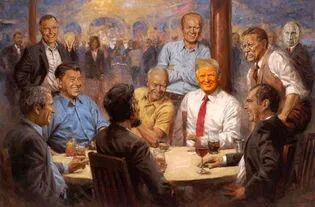 难怪,特朗普每天都会对着这张拍马屁的油画偷笑。