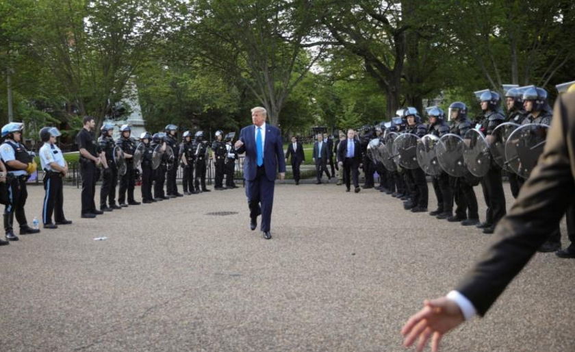 正如我在“特朗普梦游记:美国一年间仿佛穿越一个世纪”一文所指出的,特朗普的唯一目标是“明星秀”。面对半个世纪以来最大的骚乱,特朗普绝不肯放弃这个秀场:特朗普的A计划是派军队进入美国城市,这个想法在他的顾问中引发了激烈的争论。最后,在第一女儿伊万卡的主张下——知父莫若女,他想出了一种更具个人风格的方式来展现强硬——他将大步迈过拉法叶广场,前往前一天晚上被大火烧毁的教堂。于是,一场“摆拍门”风暴开始了: