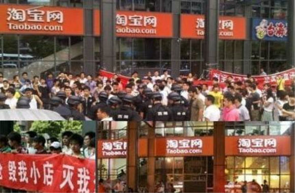 • 赢利的压力是逃不过去的:靠烧钱来吸引用户,可以一时,不能永远。为了收费,淘宝一度引发社会风波。2011 年 10 月淘宝商城新规调整,8000 多名淘宝中小卖家集聚 YY 语音平台,决定通过拍商品、给差评、拒付等手段,对淘宝商城的大店进行恶意攻击。随着马云和淘宝态度强硬的回应,“围攻”不断升级,参与人数接近 5 万,成为堪比“腾讯大战 360”的网络事件。部分淘宝商城卖家在杭州淘宝总部下拉起横幅进行抗议。