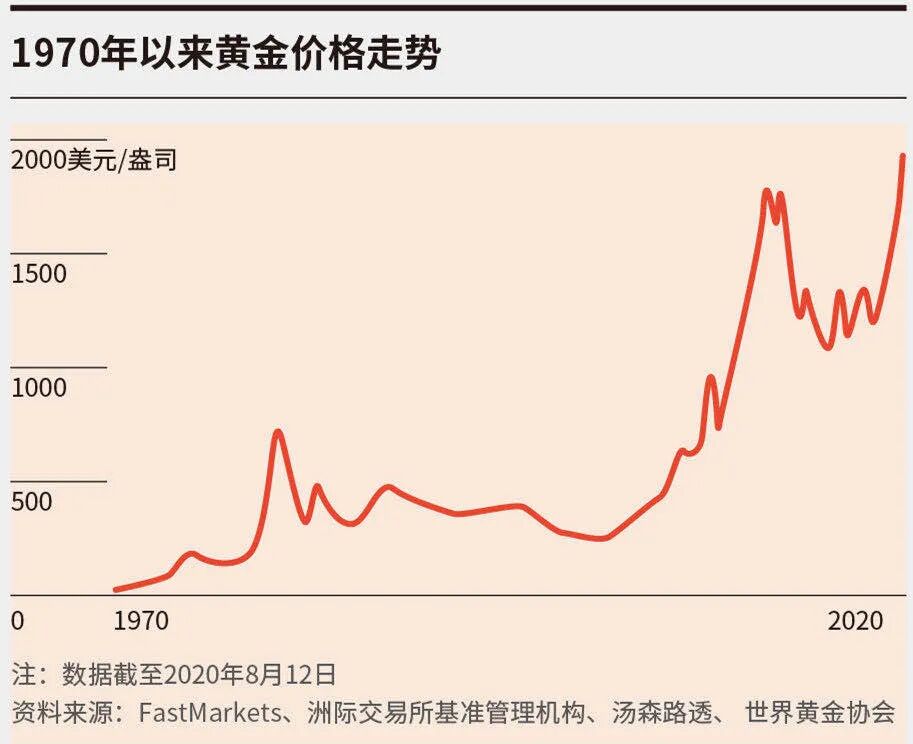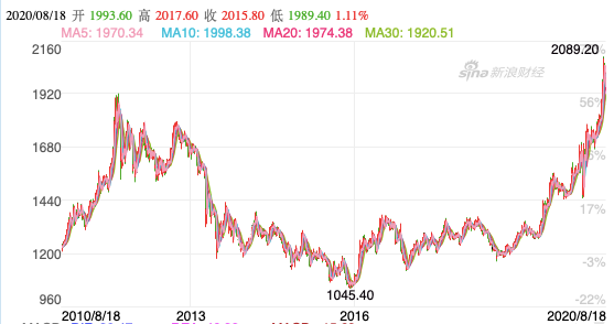 黄金上一次大涨是在 2008 年金融危机后,一路飙升至 1900 美元左右,然后一路下跌,“中国大妈们”被深度套牢,如今刚刚解套。