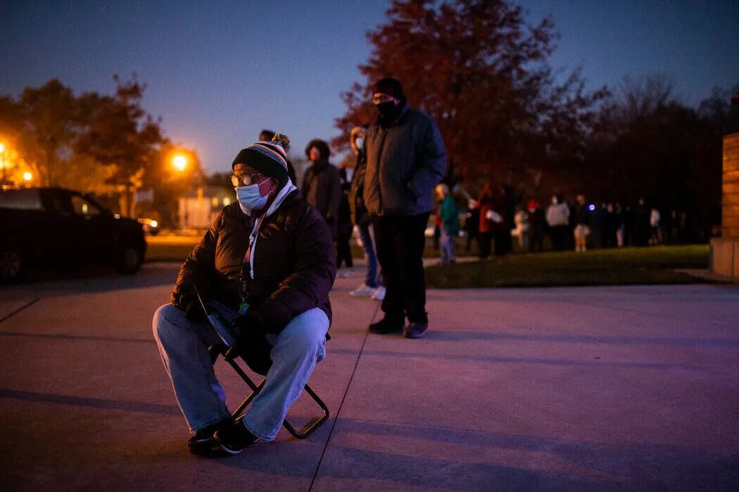 天不亮就排队投票的美国民众
