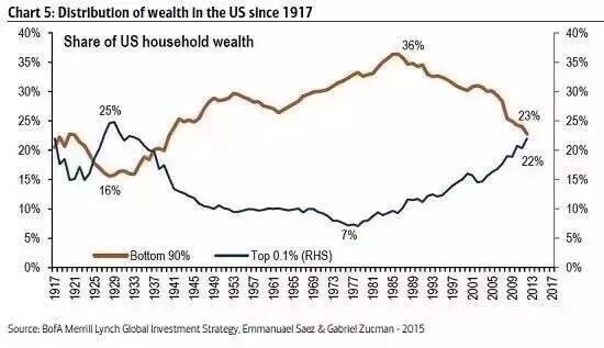 财富的不平等更甚于收入不平等。1%富人获得了1979年以来资本收入增值的7/8,而95%穷人只获得3%。沃尔玛家族六位继承人的财富,相当于美国最底层30%群体的财富。