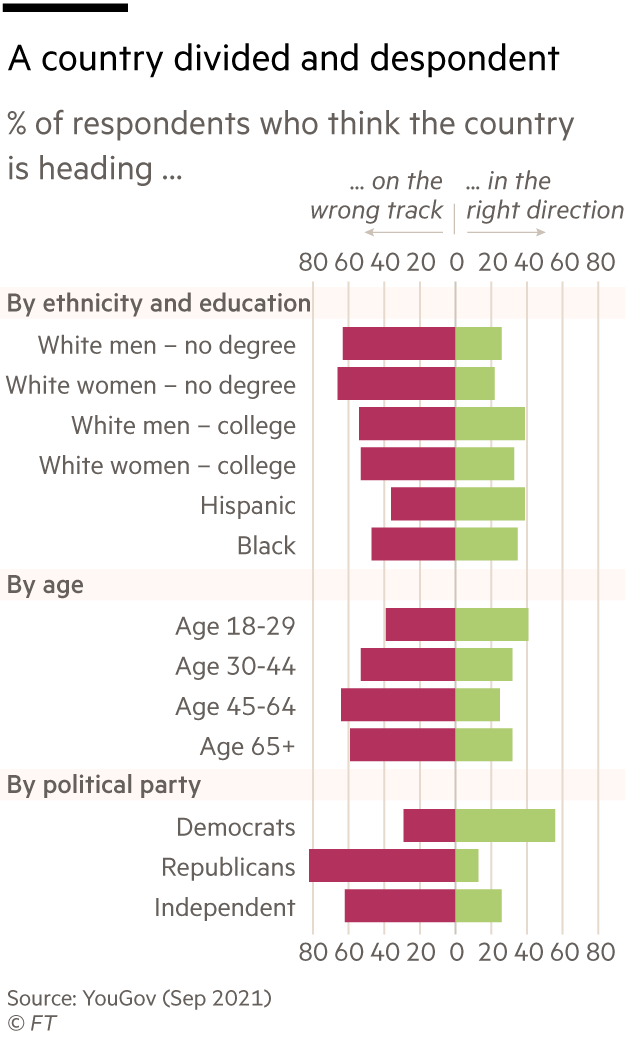 • 超过80%的共和党人认为美国走在错误的道路上(第二次美国大分裂)。