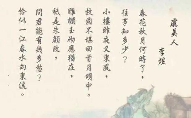 • 历史上当皇帝,有许多知识分子,是没出息的。例如能诗能赋的李后主。李煜的用词、意境都很美,但是情调柔弱、伤感,婉约派的作品我不大喜欢。