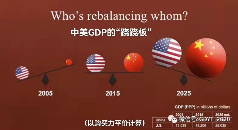 • 在现实世界中,一个国家的GDP是其综合国力的基础。虽然GDP并不自动转化为经济或军事力量,但如果以史为鉴,GDP占优势的国家在国际事务的影响力往往更大。