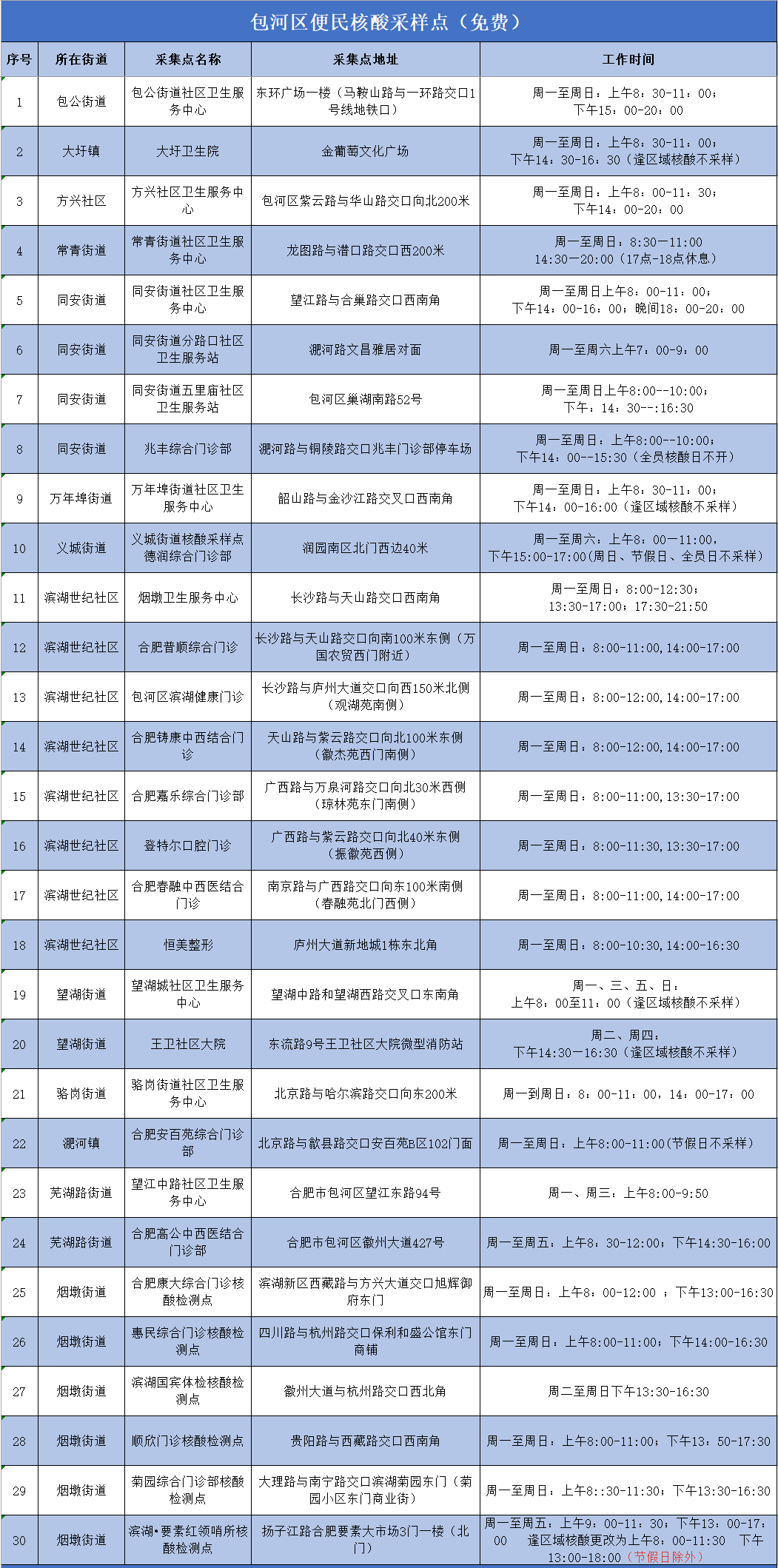 温馨提示:核酸采样点位、工作时间等信息依据疫情防控形势动态调整,请市民朋友理解支持