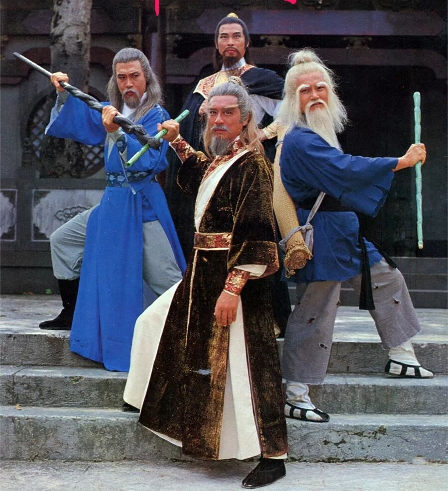 再看看9.1分的83版五绝之四,各有贵气,但又贵在不同,让人感觉到随便哪两个人物组队,下一秒都能贡献出精彩的戏份和打斗,张力十足:
