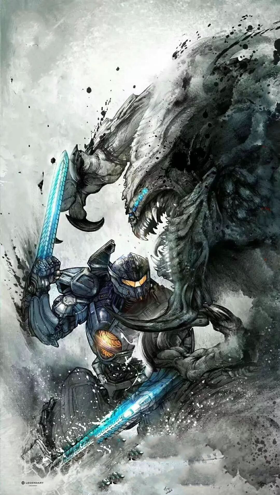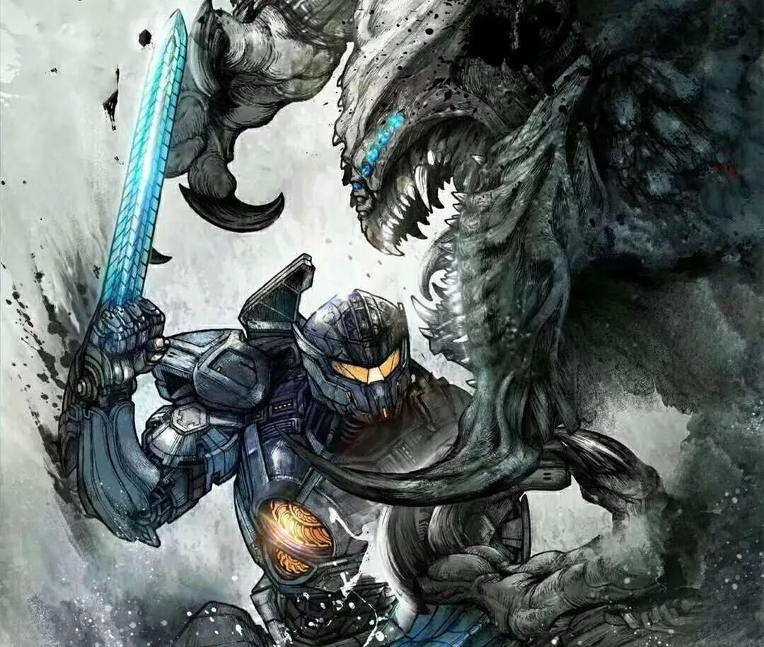 《环太平洋2》水墨风海报。原本科幻类型迅速可以转化为武侠类型,说明类型间的分际并没有那么大,“武侠新世界”会更具开放性,幻想性,更具无限可能性,很大程度上,会更“重工业”