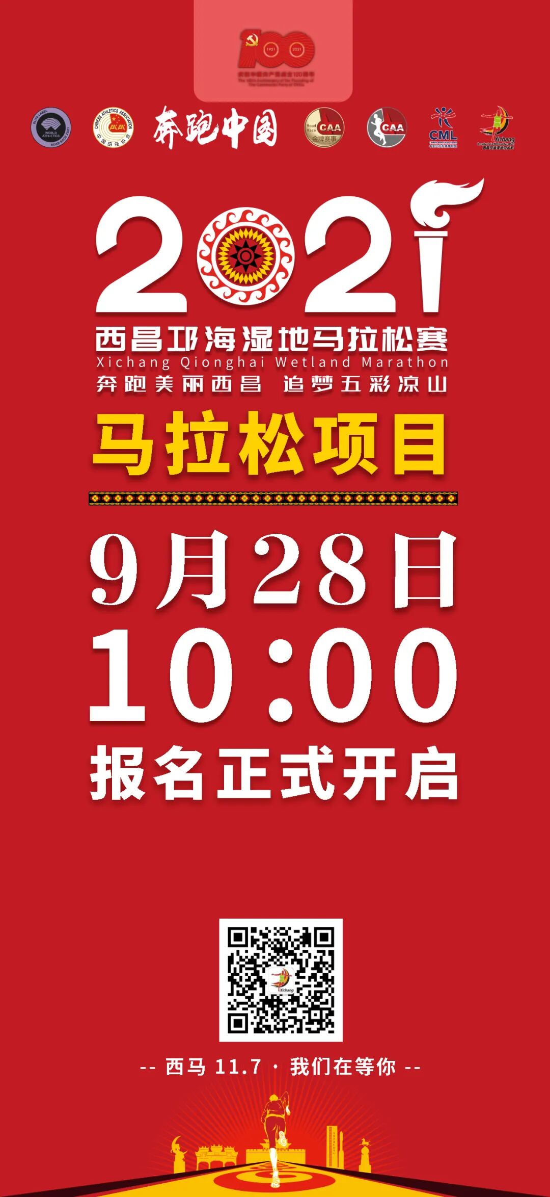 今年是中国共产党成立100周年,为了庆祝党的百年华诞,同时感谢为中国疫情防控做出巨大贡献的医护人员,2021西昌邛海湿地马拉松赛将向中国共产党党员、防疫、抗疫一线医生、护士,或学习强国积分达到20000分以上的人员(提供有效证明,满足其一即可),免费发放1000个迷你健康跑名额,数量有限,先报先得!