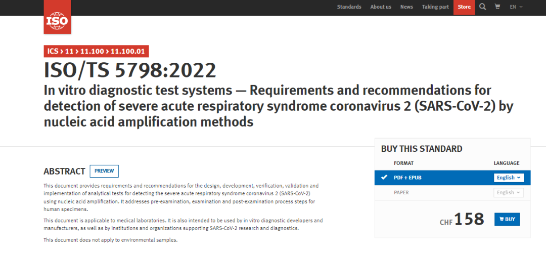 近期发布的ISO/TS 5798,在设计、开发、验证、确认和实施流程方面,为采用核酸扩增检测新冠病毒的分析测试提供了建议。该标准包括样本的检前、检中、检后的环节步骤。