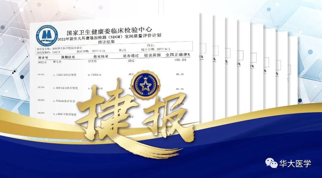 室间质评是国家卫生健康委临床检验中心对全国临床检验室间质量评价活动,是卫生行政部门和医院管理者对实验室质量实施监督的重要工具,为保证和提高我国临床检验质量,推进临床检验规范化,起到非常重要的作用。华大基因作为全球耳聋防控基因检测引领者,早在2011年率先完成国内首例高通量测序临床样本检测,截止2021年底,华大基因已为近500万名新生儿和成人提供了遗传性耳聋基因检测服务,发现数千名先天性耳聋及迟发性耳聋受累者,为这些聋儿和迟发性耳聋受累者提供了早发现早治疗的机会,为精准防聋控聋提供解决方案。未来华大基因将继续以高标准、严要求,提供优质、可靠的检测服务,全面助力耳聋疾病有效防控!