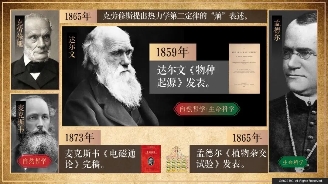 2022年,对于熟悉科学史的朋友们是个值得纪念的年份。这一年是霍金(Stephen W. Hawking)先生诞辰八十周年纪念,是杨振宁先生的百岁寿辰庆典,还是现代遗传学之父孟德尔(Gregor Mendel)先生诞生两百周年纪念。作为一个生命科学从业者,也作为有幸和杨振宁先生面谈过的晚辈,在这样一个时刻能够受邀写文,备感荣幸。然又唯恐拙笔难当,于是只好借助诸位先贤,与诸君共同回顾五百年来,从“万物之理”(theory of everything)到“众生之源”(intimate history)的生命科学发展。自十四世纪文艺复兴以来,人们对生命科学和物理学的探索连连绵不断,同步发展。1543年,当维萨里(Andreas Vesalius)发表《人体结构》(Humani Corporis),创立了近代人体解剖学,却因为挑战权威而准备南逃西班牙的时候,哥白尼(Nicolaus Copernicus)也在病榻上拿到刚刚出版的《天球运行论》(De revolutionibus orbium caelestium)样书,自然哲学始从神学中解放。1578年,当李时珍“窥天地之奥而达造化之极”,历经二十七年心血完成了《本草纲目》五十二卷的同期,信奉“一切推理都必须从观察与实验而来”的伽利略(Galilei Galileo)已悄悄开始了他的时代,观测天文学和现代物理学由此起步。1665年,当胡克(Robert Hooke)用显微镜看到细胞,并写出《显微图谱》(Micrographia)的时候,牛顿(Isaac Newton)也在不懈努力着。二十二年后,即1687年,《自然哲学的数学原理》问世,现代科学革命由此高潮迭起。1753年,当林奈(Carl Linnaeus)在他的花园中发表《植物种志》(Species Plantarum)并开创“双名命名法”为生物分类之时,卡文迪许(Henry Cavendish)和拉瓦锡(Antoine Lavoisier)也分别在探求着物理和化学的奥秘,1766年〈论人工空气〉(“On Factitious Airs”)发表,1789年《化学基本论述》(Traité Élémentaire de Chimie)问世,构成世界的元素奥秘已然隐隐可见。1859年,达尔文(Charles Darwin)《物种起源》(The Origins of Species)发表,神创论和物种不变论瞬间坍塌;1865年,孟德尔《植物杂交试验》(Versuche über Pflanzen-Hybriden)发表,遗传学第一、第二定律确立,现代遗传学由此奠基。就在生命科学双星闪耀之际,克劳修斯(Rudolf Clausius)于1865年提出热力学第二定律的“熵”(entropy)来表述科学系统中的失序现象,而麦克斯韦(James C. Maxwell)的《电磁通论》(A Treatise on Electricity and Magnetism)于1873年完稿。进入二十世纪,人类对于万物之理不觉开始有初步掌握,并开始将相关研究成果与生命科学相结合。1905年,当爱因斯坦(Albert Einstein)提出狭义相对论的时候,我们开始知道质量和能量原来“同出异名”。1909年,约翰逊(Wilhelm Johannsen)提出“基因”(gene)一词,为生命的基本单位给出了绝佳的好名字。两年后,即1911年,摩尔根(Thomas H. Morgan)提出染色体遗传理论,从而补全了遗传学第三定律。1927年,第五届索尔维国际物理化学会议在比利时布鲁塞尔召开,这次会议可谓全世界最聪明的脑子凑在一起所开的“神仙会议”。一年后,弗莱明(Alexander Fleming)发现青霉素(penicillin),人类对抗细菌有了全新武器,人均预期寿命从此迎来大幅度提升。1936年,时任麻省理工学院校长的康普顿(Arthur Compton)在哈佛大学医学院做了一场划时代的演讲“物理学能为生物学和医学做些甚么”(“What Physics Can Do for Biology and Medicine”),将物理学研究带入生物学领域。一年后,杜布赞斯基(Theodosius Dobzhansky)发表《遗传学与物种起源》(Genetics and the Origin of Species),首次结合遗传学研究和生物进化论。又一年后,“分子生物学”(molecular biology)这一名词被洛克菲勒基金会(Rockefeller Foundation)首次提出,旨在开创以物理和化学解释生物学的全新研究。1944年,量子力学奠基者之一薛定谔(Erwin Schrödinger)思考是否存在可计算的“遗传力”(heritability)进而发表《生命是甚么?——活细胞的物理观》(What Is Life? The Physical Aspect of the Living Cell)一书,使很多物理学家进入遗传学的研究领域,从而促进了遗传学的迅猛发展。同年,艾弗里(Oswald Avery)设计了简单而精妙的肺炎双球菌体外转化实验,将脱氧核糖核酸(DNA)而不是蛋白质牢牢锁定,证实前者为遗传物质,人类离破译生命密码愈来愈近。一年后,即1945年,奥本海默(J. Robert Oppenheimer)所主持的曼哈顿原子弹计划成功,人类开始学会利用核能,大科学工程范式由此建立。1953年,在米勒(Stanley Miller)通过模拟原始大气的实验去论证生命起源的同时,沃森(James Watson)和克里克(Francis Crick)终于揭示了最重要的生命分子,即DNA的双螺旋结构,而其能够完成这一发现也必须要感谢背后的富兰克林(Rosalind Franklin)女士,正是她于1952年完成的51号照片(Photo 51)——堪称人类历史上最美的一张X光衍射照片,给了两人核心启发。五年后,即1958年,克里克发表〈分子生命学的中心法则〉(“Central Dogma of Molecular Biology”),从而确定了生命遗传信息的流向。同年,杨振宁先生和李政道一起提出了宇称不守恒定律,成为当代物理学的重要原理,人类开始明白微观粒子非但测不准,而且在弱相互作用下不对称。二十世纪中叶以后,人类对生命科学和太空探索的兴趣与日俱增,两门学科均出现可观的崭新成果。1961年,克里克、布伦纳(Sydney Brenner)、巴尼特(Leslie Barnett)和瓦特—托宾(R. J. Watts-Tobin)确认遗传密码(genetic code)为三联密码子(codon),从而清楚了解基因到氨基酸之间的翻译关键。五年后,即1966年,尼尔伯格(Marshall W. Nirenberg)等人将全部有义密码子破译。1969年,普利高津