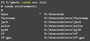 比如,名为 jack 的环境,是一个通用的开发环境。而名为 faceswap 的环境是我专门为换脸算法搭建的环境,因为它的依赖和有些通用第三方库包是冲突的。