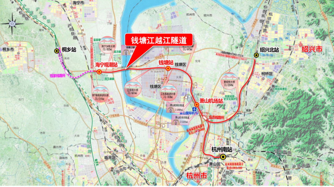 Beginning from the Shanghai-Kunming high-speed rail line and the Tongxiang station of Shanghai-Hangzhou, the new route will pass through Xiaoshan International Airport before continuing to ShaoxingBei Station on the Hangzhou-Shaoxing-Taizhou line. Spanning a total length of 72.94 kilometers, a connecting line from HangzhouNan to the airport will run its own 13.7, all included in a total investment of 38.205 billion yuan, with Shaoxing’s share seeing 10.36 kilometers and 2.633 billion yuan, respectively. Linking the two main lines of Jiangdong Channel at the Hangzhou end of the Hangzhou-Shaoxing-Taihou line, the airport connection will, upon completion, link to the Hangzhou-Changsha line with direct stops in Shaoxing and Jinhua, assuming the integral Wangjiangmen Tunnel’s timely completion, and realization of intercity rail travel from ShaoxingBei to Hangzhou Chengzhan Station.