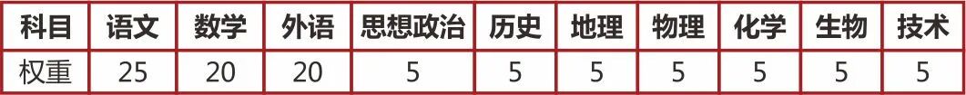◆学考成绩折算按照语文、数学、外语、思想政治、历史、地理、物理、化学、生物、技术10门课程计算,按下表将每门课程的等级转换为相应的分值,再乘以相应的权重得出最终分数,满分为100分。
