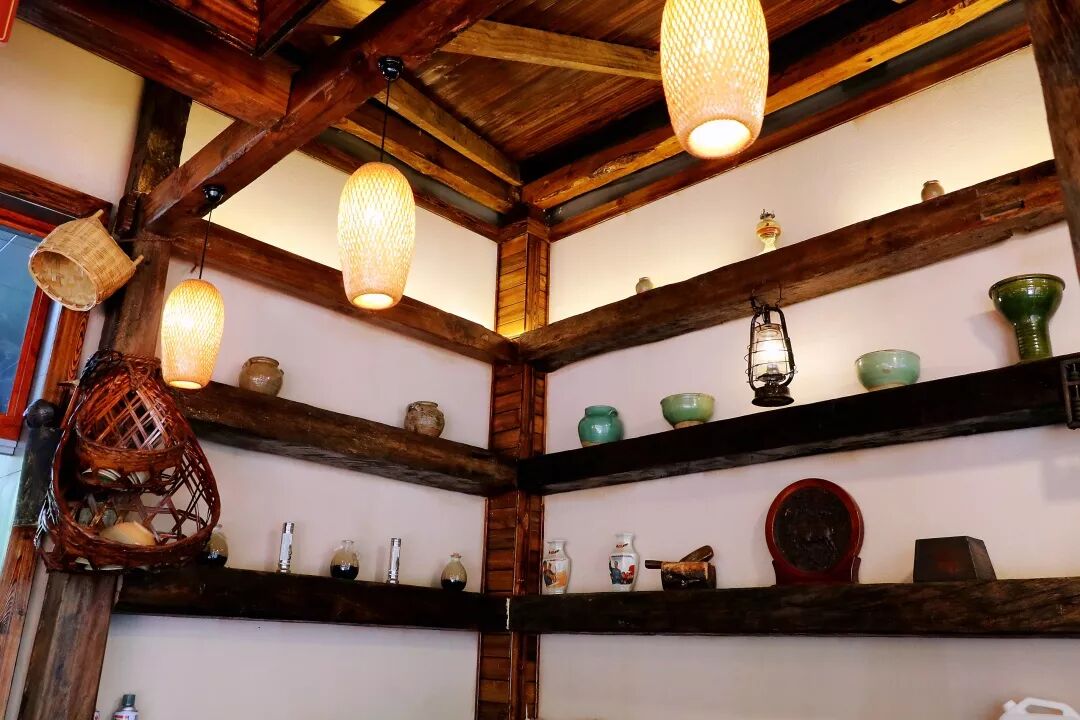 装修中大量使用从附近村寨收集的老旧木材和家用器械,复古怀旧,满满都是回忆。