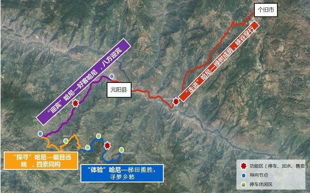 沿途分为“走进哈尼、迎宾哈尼、探寻哈尼、体验哈尼”4个路段,让游客在尚未观览到梯田美景前就能够亲身感受到“云上梯田梦想红河”的文化氛围。