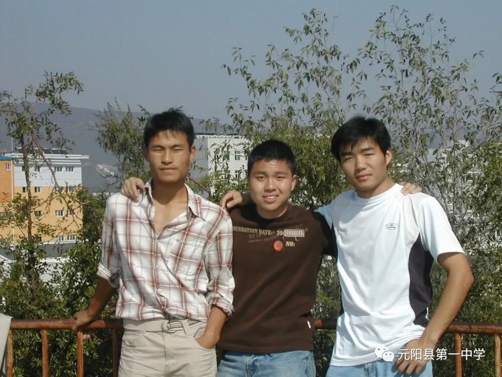 (以上3人均为元阳一中毕业学生。中为笔者,右一为2004级文科状元李志兴,左一为2004级理科生刀朝荣)