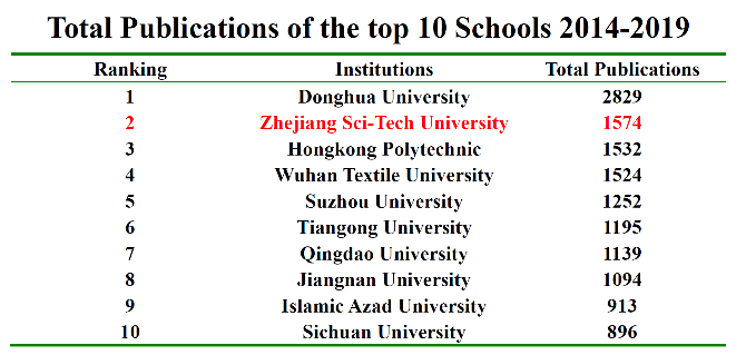 根据香港理工大学发表在《Journal of the Textile Institute》上的研究报告,2014-2019年间,全球高校主要纺织学科发表的论文总数,浙理工纺织学科位列第二。