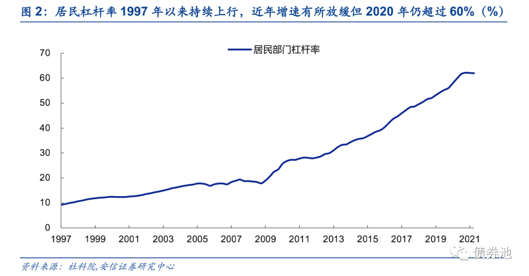 ■在经过较长时期内把房地产作为刺激经济的手段后,房地产曾出现较为明显的金融化泡沫化势头,“房地产是现阶段我国金融风险方面最大的‘灰犀牛’”,房地产去库存去杠杆势在必行而且迫在眉睫。自2003年确立房地产的支柱产业地位以来,房地产在较长时期内扮演着刺激经济手段的角色,不仅房地产对GDP的贡献率从1997年的1.5%左右快速攀升至2007年的8%附近,2009-2012年还继续维持在5%左右的高位,而且随之而来的是居民杠杆率从1997年的不足10%快速飙升至2013年的30%,而后虽然增速有所放缓但2020年仍超过了60%,同时商业性房地产贷款余额占全部贷款余额的比例在2004-2019年的15年间翻了一番,2020年才开始从近30%的高位缓慢回落,2017年全部房地产相关贷款余额已超过金融机构各项贷款余额的1/3,超过了2008年次贷危机前夕美国房地产抵押贷款与当年GDP之比,为此郭树清书记反复提及“房地产是现阶段我国金融风险方面最大的‘灰犀牛’”。房地产去库存去杠杆已势在必行而且迫在眉睫。