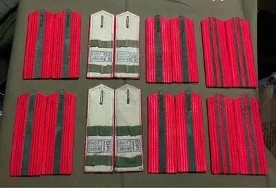 两种不同材质的87式武警套式士兵警衔,早期为凡立丁材质布套,后改为植绒绒面套