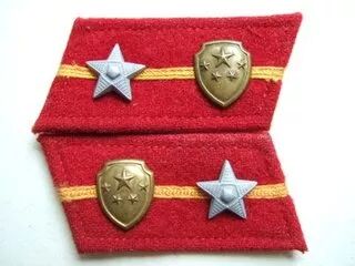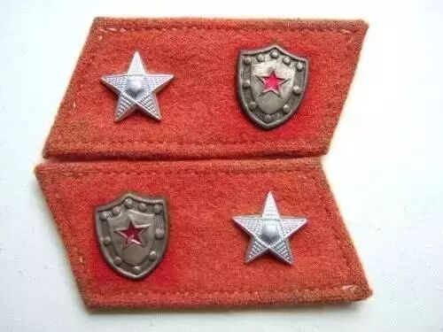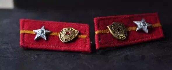 早期公安军领章使用绿色底板只使用了2个月,存世量少,后改为红色底板。